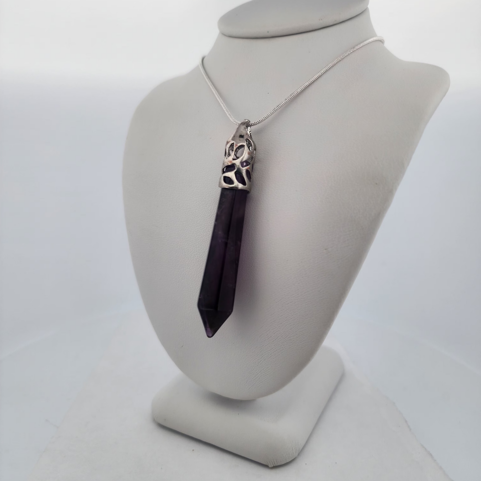 Please note: As these are natural amethyst crystals, each pendant is one-of-a-kind with unique variations in purple color intensity, clarity, and natural characteristics. No two are exactly alike.